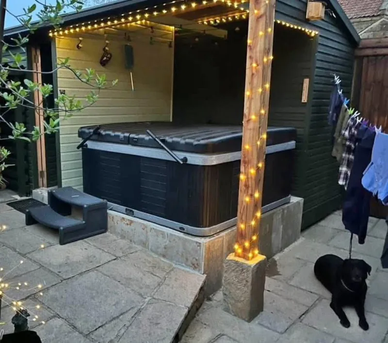 This is the top of the range plug and play hot tub hire, and followers of us will remember we used to have a few of these years ago in sandstone colour .